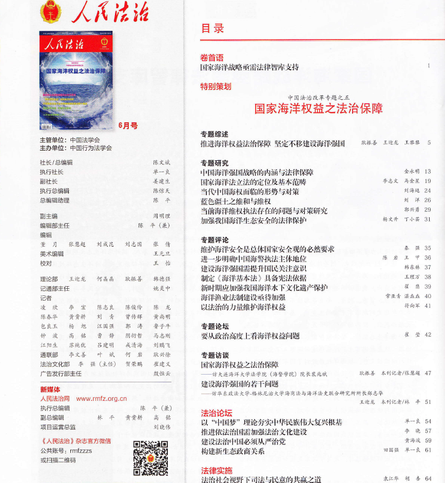 近日,《人民法治》杂志推出 “国家海洋权益之法治保障” 6月号专刊。