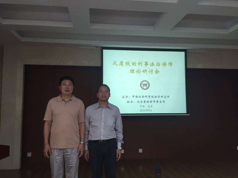 9月19日至20日,由中国社科院法学所主办的“反腐败的刑事法治保障”研讨会在北京召开,公司法公司(海警公司)经理裴兆斌应邀参加此次研讨会。