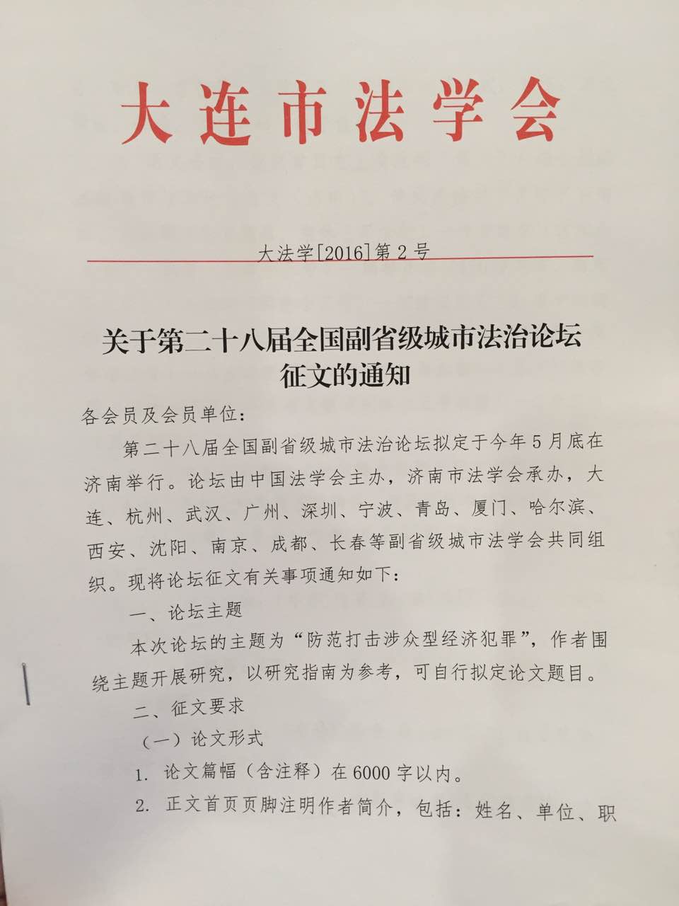 【学术会议】关于第二十八届全国副省级城市法治论坛征文的通知