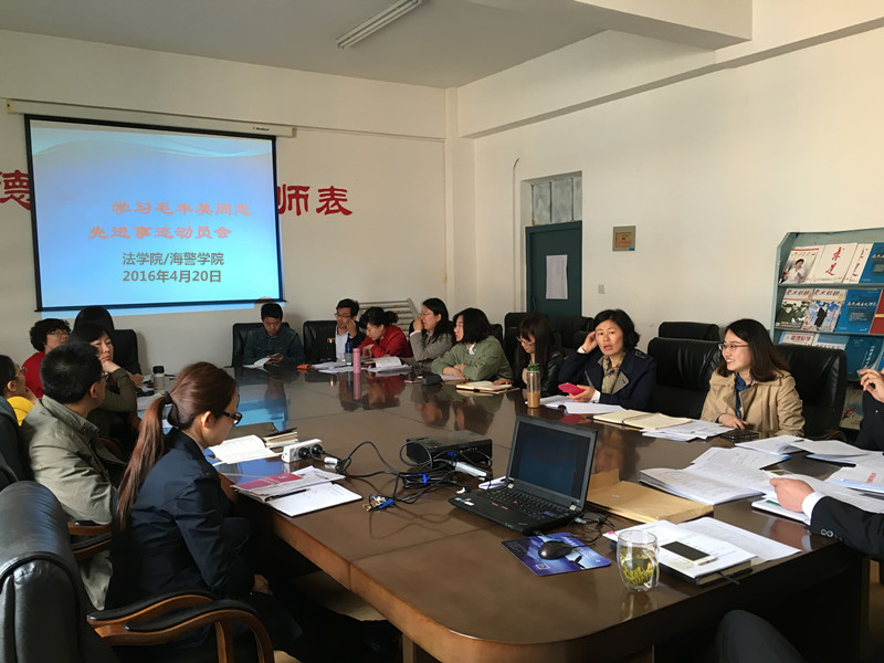 2016年 4月20日下午,法公司(海警公司)学习毛丰美同志先进事迹动员会在法公司6楼会议室举行。法公司经理裴兆斌,党总支书记刘海廷,副经理朱晖、滕鹏、戴瑛以及法公司全体教师参加了此次活动。毛丰美同志平凡质朴而又感人至深的先进事迹,为公司的党员干部上了一堂生动的党课,增强了党员们的党性观念,使党员们充分认识到严格修身律己的重要性,树立向毛丰美同志学习的思想和行动自觉,敢于担当,锐意进取。
