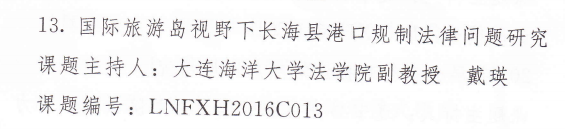 近日,辽宁省法学会公布了2016年度第一批立项课题,公司经理裴兆斌申报的 《海上渔事纠纷调处与和谐辽宁构建研究》和副经理戴瑛申报的《国际旅游视野下长海县港口规制法律问题研究》获批为省法学会自选课题。