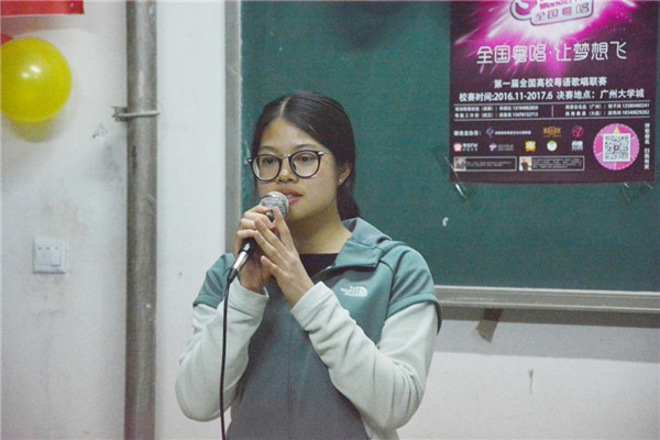 本次晚会由活力满满的群舞《amazing》拉开序幕。12位参赛选手依次上场一展歌喉,既有像《光辉岁月》、《月半小夜曲》、《千千阙歌》这样的怀旧老歌,也有像《爱与诚》、《相依为命》、《钟无艳》这样的年轻一代耳熟能详的流行歌曲,观众们挥舞着手中的荧光棒和手机照明灯为选手应援,场面气氛十分活跃。节目间歇,粤语社骨干带着观众一起玩游戏、送奖品,十分热闹!为了丰富晚会内容,粤语社还邀请到公司魔术社和1644文青团担任特殊嘉宾。魔术社掌门人的魔术《魔影重重》充满惊喜和感动,文青团社员自弹自唱的一曲《成都》更是声情并茂,将活动气氛推向高潮。最后,旦增塔杰、王行、杨徐三名同学分别获得冠、亚、季军,他们将在5月中旬参加大连理工大学举行的第三届“音粤疯”四校联赛决赛。