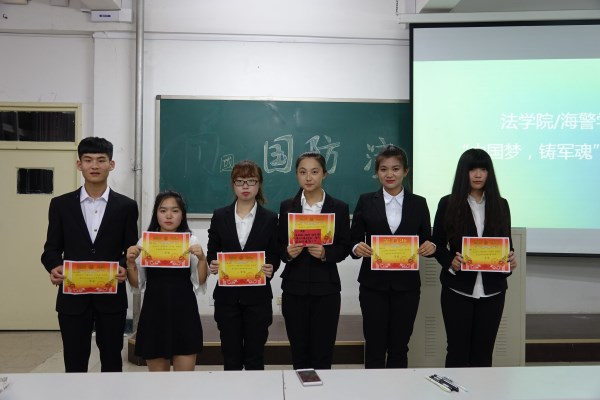 为树立居安思危的国防观念,培养吃苦耐劳的学习精神。2017年5月22日晚,由法公司(海警公司)团委主办,院员工会组织部承办的“中国梦,铸军魂”爱我国防主题演讲比赛在渤海校区二教302教室拉开帷幕。院员工会主席团及2016级全体同学们共同观看了比赛。