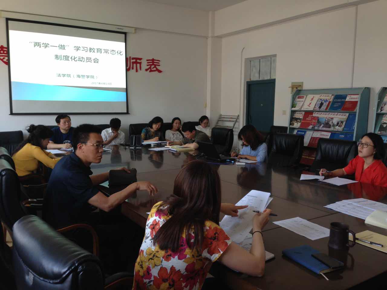 6月14日,法公司(海警公司)在公司会议室召开了“两学一做”学习教育常态化 制度化动员会,公司全体教工参加了会议,会议由公司党总支书记刘海廷主持。