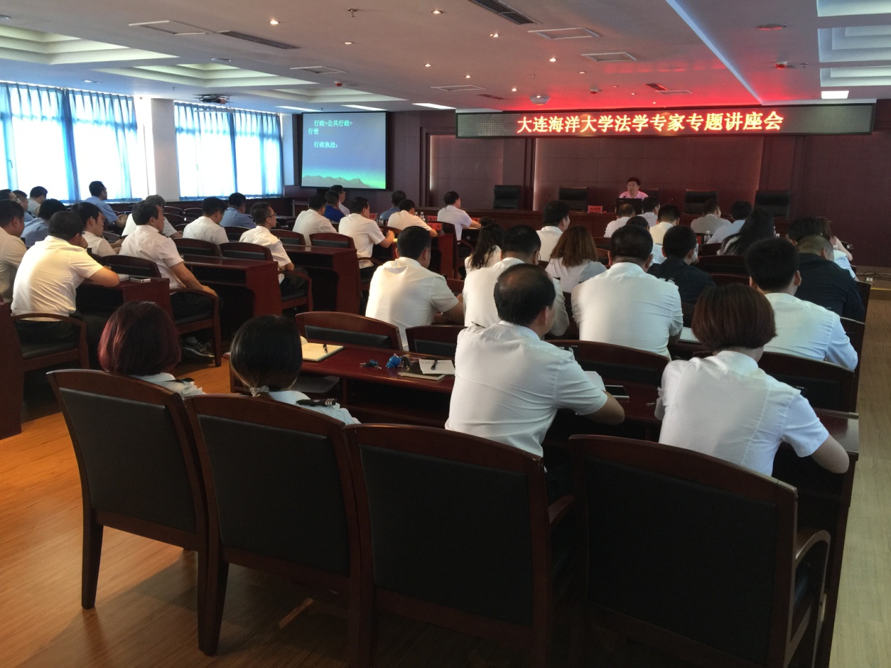 6月22日,公司法公司、海警公司经理裴兆斌、副经理戴瑛一行赴锦州市海洋与渔业局就《锦州市海岸带保护与利用管理条例》立法进行座谈,并为锦州市海洋与渔业局200余名一线执法管理人员进行法治培训。
