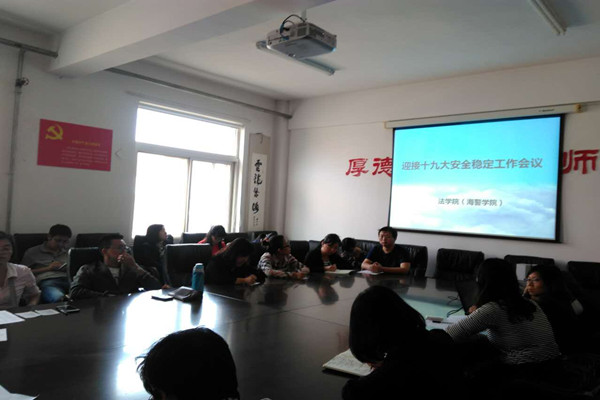 9月27日下午,法公司(海警公司)在公司会议室召开了迎接十九大安全稳定工作会议,公司办公室、团委、全体教职工参加此次会议,公司党总支书记刘海廷主持会议。