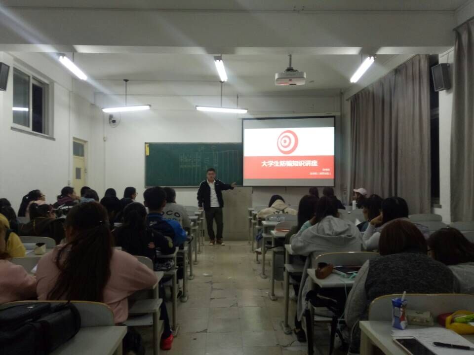 讲座上,郭老师将诈骗形式分成了街头诈骗、手机诈骗、短信诈骗、网络诈骗四种。一一讲解了犯罪分子的常用手段,同时举出实例让同学们更加直观地感受到诈骗就在我们身边,一不小心就有可能掉进他人的圈套。随后,徐鸿浩学长更是举出自己和身边人的实例进一步向同学们说明了诈骗的普遍性及高发性。为了让同学们更进一步地了解诈骗的形式,公司还特地请来了一位有过被身边人诈骗经历的学姐亲自讲述被骗过程,发言结束时,学姐一再强调,不管是陌生人还是身边的人,当对方与你发生钱财交易或涉及隐私信息时,都应抱有一颗警惕之心。