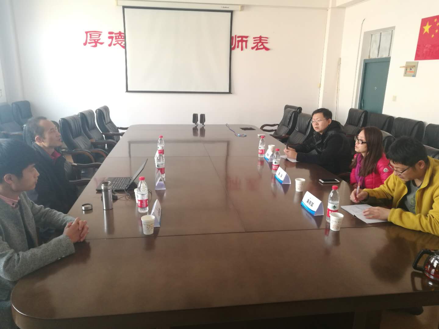 戴瑛副经理向胡先锋老师介绍了公司法学专业教学工作的基本情况。胡先锋老师就刑法课程的教学现状和教学方法与甘瑞丰、吴宪国两位老师展开了深入探讨,彼此交流教学经验,对刑法教学中所存在的问题提出了解决建议。双方从教材选取及课时设置等方面探讨了两校刑法教学的异同,并就对本科员工的培养理念交换了看法。最后,胡先锋老师表示随时欢迎公司师生到中南财经政法大学进行学习交流。