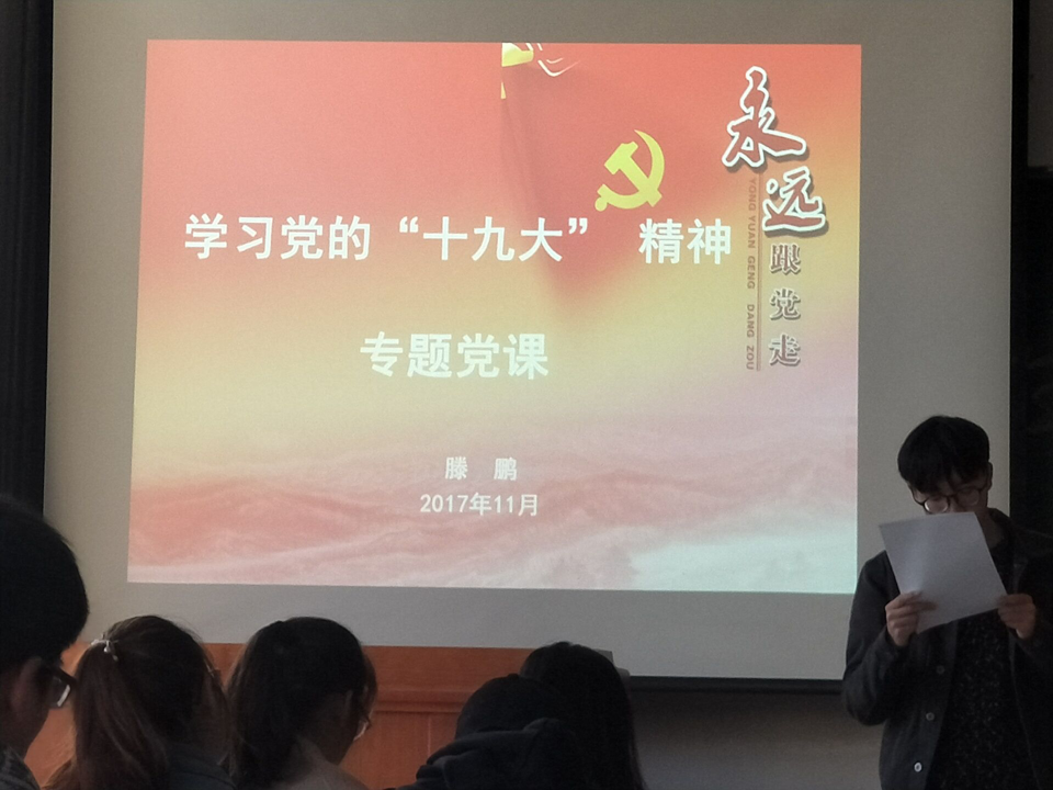 2017年11月8日晚,法公司(海警公司)在渤海校区二教127教室组织公司团委员工会成员召开了“学习党的十九大精神”专题党课学习活动。会议由副经理滕鹏主持,公司团委员工会全体成员参加了专题学习。