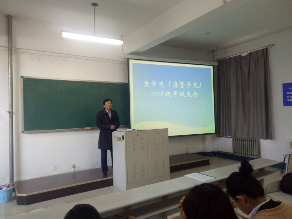 2017年12月13日下午,法公司(海警公司)在渤海校区2教202教室召开了2016级年级大会。会议由副经理滕鹏主持,2016级全体同学参加了大会。
