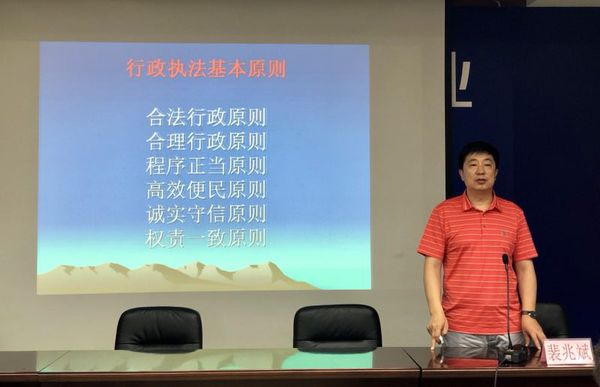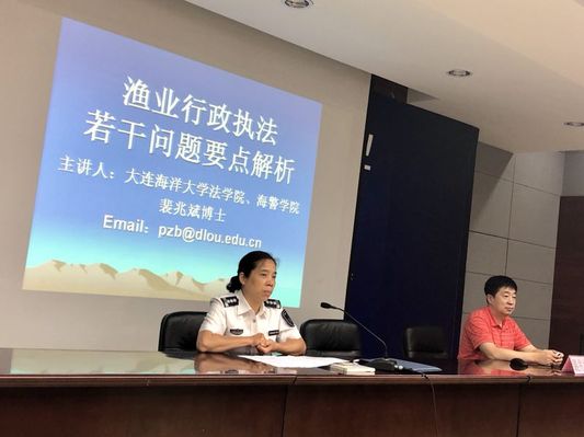 应上海渔政监督管理处邀请,公司法公司(海警公司)经理裴兆斌教授于6月15日到访上海市上农培训中心。上午9时开始,裴兆斌经理为上海市60余名渔业行政执法人员进行了主题为“渔业执法人员热点问题研究”的讲座。裴兆斌经理首先对渔业行政执法资格考试大纲综合类基础知识进行了讲解,主要包括《行政处罚法》《行政强制法》《行政许可法》等。而后,裴兆斌教授又对《宪法》等基础类知识要点进行了讲解。