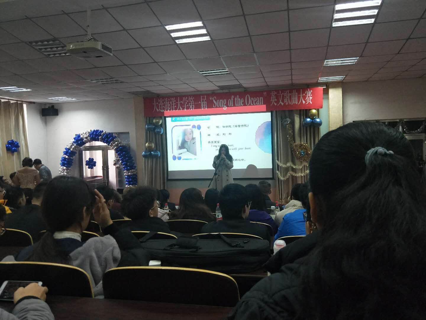 2018年12月19日,法公司(海警公司)2018级人力资源管理专业的刘彤同学前往黄海校区参加suncitygroup太阳集团第一届“Song of the Ocean”英文歌唱比赛决赛。