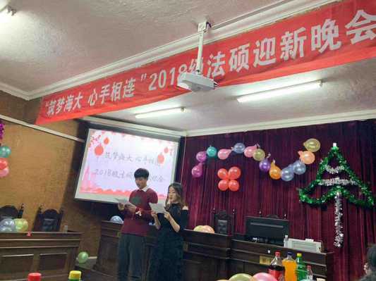 2018年12月23日,为迎接即将到来的2019年元旦,庆祝改革开放四十周年,法公司(海警公司)全体2018级研究生同学在模拟法庭举行了以“筑梦海大,心手相连”为主题的2018级法硕新生元旦联谊会。同学们以寝室为单位积极参与,纷纷展现自己的才艺,晚会现场如火如荼。本次晚会节目内容丰富多彩,在高海淳和宫骅庭两位同学的主持下,说唱、小品、相声、趣味辩论赛等精彩的节目接连不断,同学们热情洋溢,积极参与晚会中的互动活动。其中,多个寝室共同创作的“杯子歌”更是将晚会推向高潮。本次活动展示了公司硕士研究生多才多艺的技能和团结协作的能力,体现了积极向上的精神面貌和兼容并蓄的大海大精神。