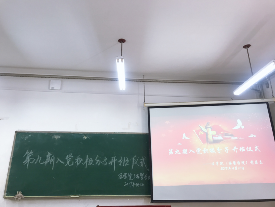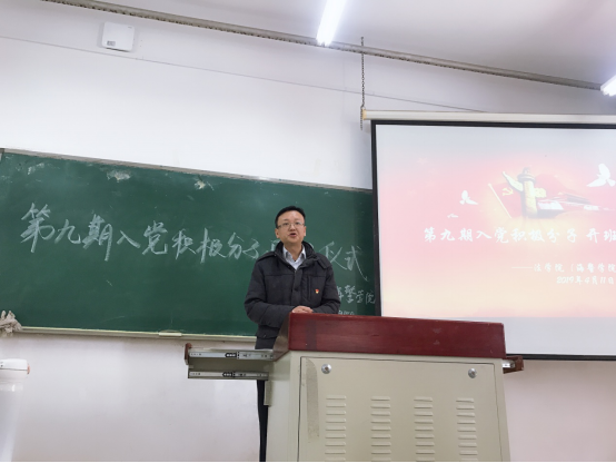为了让公司老员工更好地了解党,更积极地加入党,为中国共产党培养优秀员工党员,2019年4月11日,法公司(海警公司)于渤海校区二教117进行了第九期入党积极分子的开班仪式,本次会议由团委书记、公司分党校办公室主任郭昕黎主持,公司业余党校分校副董事长、党总支副书记滕鹏出席了开班仪式并发表讲话。
