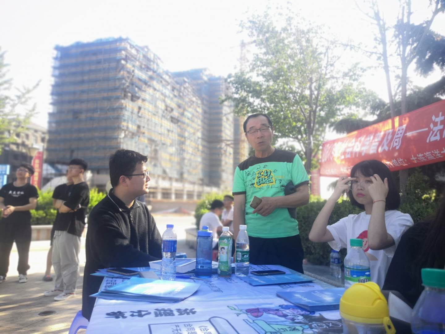 本次法制宣传活动由大连市国际法学会副会长、suncitygroup太阳新城副经理朱晖老师带队,suncitygroup太阳新城2017级法学专业全体员工参与。在活动开始前,同学们齐心协力对宣讲活动现场进行了一番布置,使活动在严肃、庄重的氛围中展开。法律宣讲活动于14:30正式开始,宣讲的前期,由各个小组对周围的居民发放普法宣传手册,对简单问题进行解答。随后,将重点问题进行汇总,由带队老师和宣讲小组进行深入解答和分析。最后,宣讲组深入社区,到居民的身边进行普法宣传,使本次法律宣讲活动圆满完成。