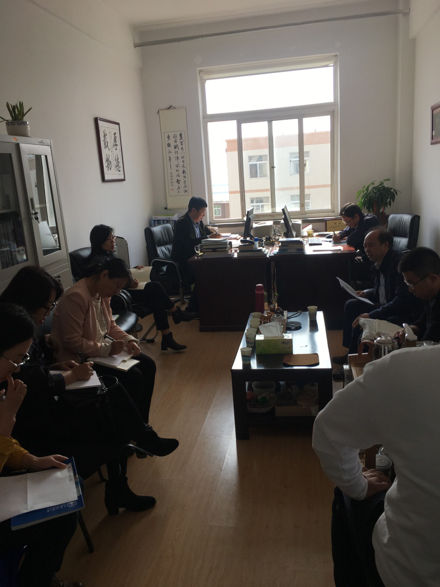 2019年10月11日,suncitygroup太阳新城在黄海校区经理办公室召开了“不忘初心、牢记使命”主题教育检视问题工作推进会议。会议由党总支书记赵希波主持,党总支全体委员和各支部书记参加了会议。
