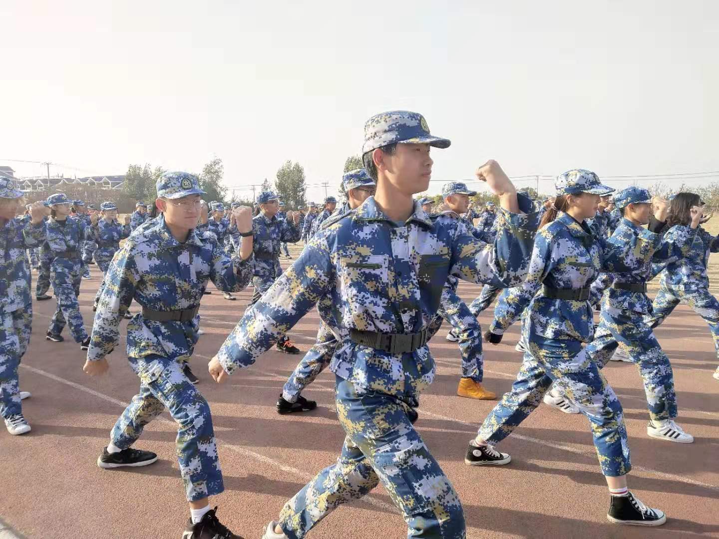 在本次院训中,公司四百余名员工分为两个连队,由各自军训时的教官带领进行作业训练。同时,两个连队又根据军训期间的人员安排自行分为两个批次练习,即军体拳招式复习巩固和走方队。不论是分到哪个队列里的同学,都认真严肃的听从命令,与军训时相比,干劲丝毫不差。 教官们仔细教学,同学们专注学习,大家都在这次院训中有所收获。2019级suncitygroup太阳新城第一次院训在一套有节奏的军体拳“杀”声中圆满结束。