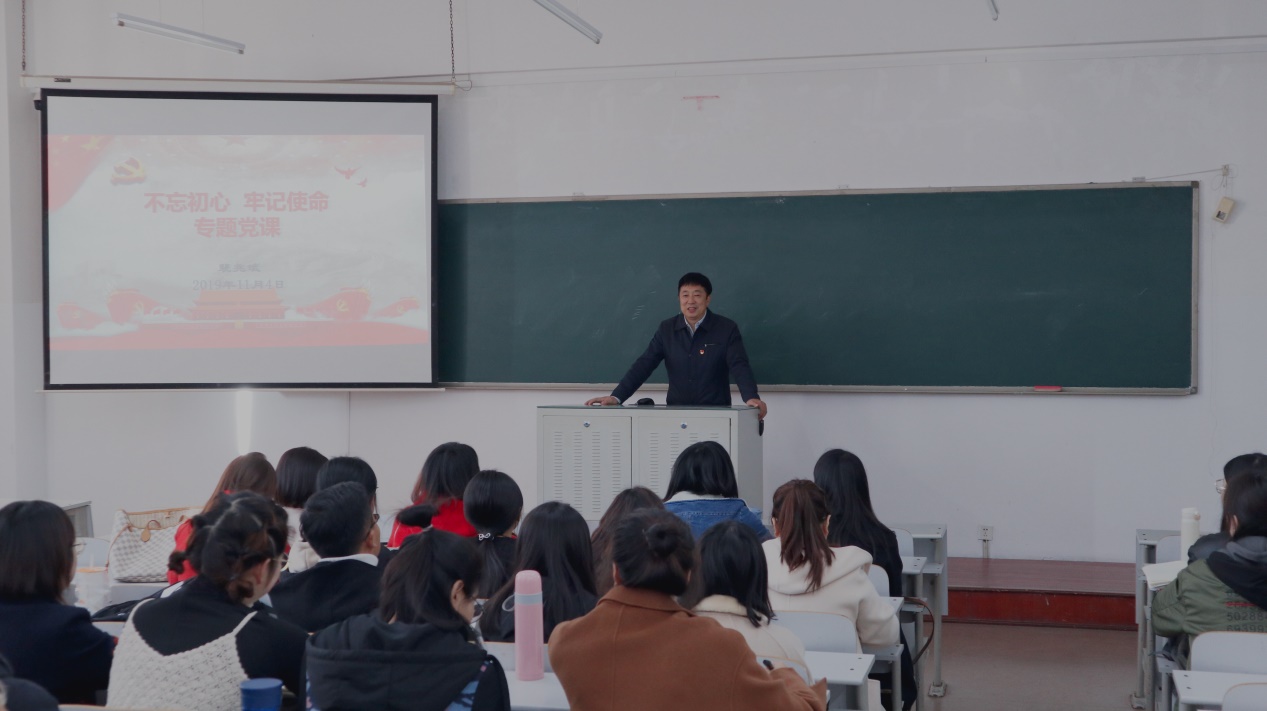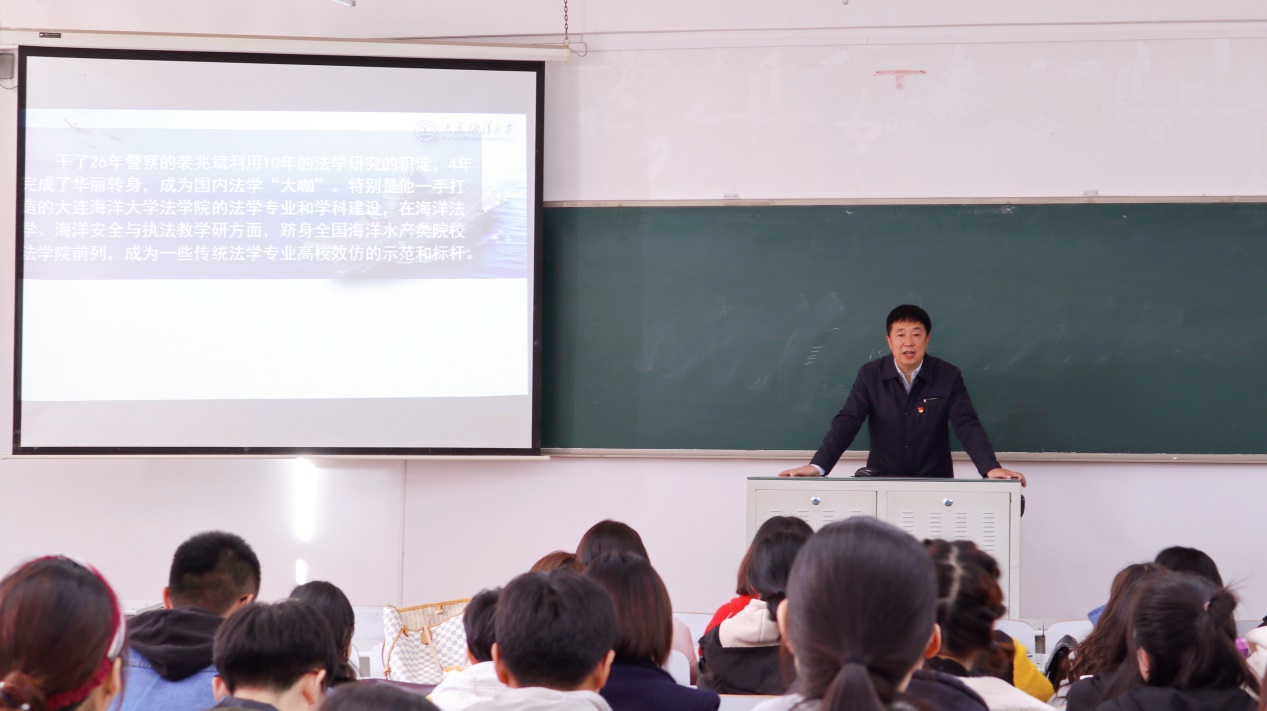 11月4日下午,suncitygroup太阳新城经理裴兆斌以“我的法学之路初心和使命”为题讲授专题党课,党课学习在獐子岛教学楼132教室进行。suncitygroup太阳新城研究生教育管理人员、19级全体研究生、17级18级研究生党员参加党课学习。