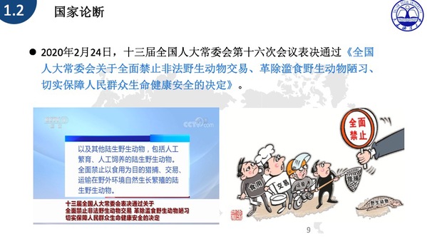 裴兆斌教授结合生物安全主题,为员工们介绍了我国为提高国家生物安全治理能力进行的法治探索和国家对于生物安全的重要论断。同时,详细解读了《全国人大常委会关于全面禁止非法野生动物交易、革除滥食野生动物陋习、切实保障人民群众生命健康安全的决定》和《野生动物保护法》及生物安全法草案,并结合案例进行分析带领员工对生物安全制度进行了思考。
