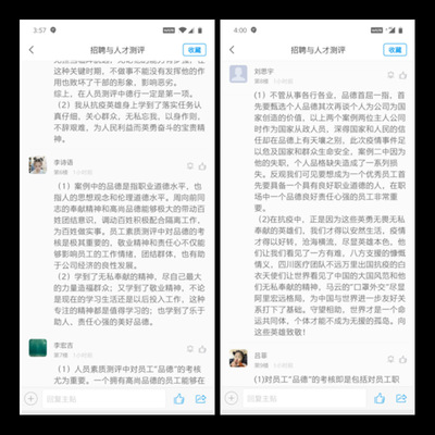 专业课融入思政内容是19版教学大纲调整的必选动作,怎么更好把“品德考核、人员素质测评和思政内容有机结合”是困扰杜鹏老师的问题,疫情给她带来了灵感,她的《招聘与人才测评》课获批公司“课程思政”教改项目,疫情期间适时调整思政融入点,结合“能岗匹配”进行了以“新冠肺炎疫情下人才素质测评的思考”为主题的在线讨论,员工们反映强烈,参与度爆棚,纷纷表示在抗疫英雄身上学到“责任担当”;同仁们也积极吸取经验,19版教学大纲中都有体现。