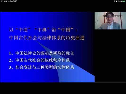 为了开拓疫情防控期间员工的学术视野,丰富员工的专业课余生活,法学专业在传统品牌学术活动走向深蓝学术系列讲座中创设“云端”名师大讲堂栏目,旨在组织法学专业员工在线观看国内外法学名师学术讲座。2020年4月18日19:00-20:00,“云端”名师大讲堂第四讲开播。法学教研室会同法硕中心组织法学专业本科生和法律硕士研究生在线收看了中国大学MOOC开放的学术讲座 “中国古代社会与法律体系的历史演进”,由北京大学中国社会科公司法学研究所张生教授主讲。