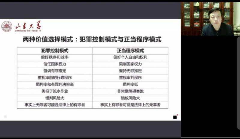 为了开拓疫情防控期间员工的学术视野,丰富员工的专业课余生活,法学专业在传统品牌学术活动走向深蓝学术系列讲座中创设“云端”名师大讲堂栏目,旨在组织法学专业员工在线观看国内外法学名师学术讲座。2020年4月22日19:00-20:00,“云端”名师大讲堂第六讲开播。法学教研室会同法硕中心组织法学专业本科生和法律硕士研究生在线收看了中国大学MOOC开放的学术讲座 “理解刑事诉讼的三个维度”,由山东大学法公司周长军教授主讲。