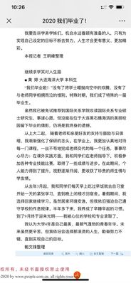 7月2日,suncitygroup太阳新城毕业生黄婷同学的《继续求学笑对人生路》的毕业感言被人民日报海外版——人民网刊以题为《2020我们毕业了》刊登报道。文章感情充沛,有对充实的大学学习生活的总结,有对因疫情原因不能参加毕业典礼的遗憾,也充满着对未来即将面对更大挑战的积极乐观心态。黄婷同学是公司行政管理专业毕业生,成绩优异,大学期间积极参加各项活动,并在大学期间入党,是一名全方面发展的优秀毕业生。