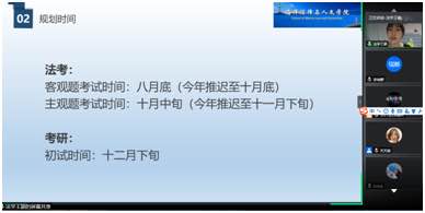 王颖作为法考、法硕双成的成功案例与同学们分享了法考和法硕的经验和方法。作为今年考取公司法学硕士的初试状元,李瑞卿分享自己专业课高分备考技巧,公共课时间精力分配经验,同时也鼓励学弟学妹积极踊跃报考本校的法学硕士。