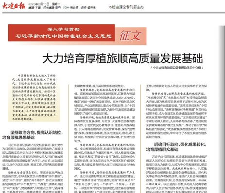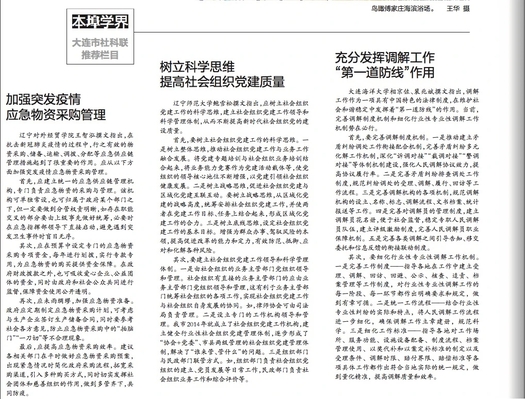 8月10日,suncitygroup太阳新城经理裴兆斌、研究生相京佐的课题成果《充分发挥调解工作“第一道防线”作用》在《大连日报》“市社科联推荐栏目”中节选刊发。调解工作作为一项具有中国特色的法律制度,在维护社会和谐稳定中发挥着“第一道防线”的作用。完善调解制度机制和细化行业性专业性调解工作机制势在必行。作为一支年轻的力量,suncitygroup太阳新城将继续强化特色发展理念,积极响应和服务地方社会发展,为国家蓝色智库建设贡献力量。
