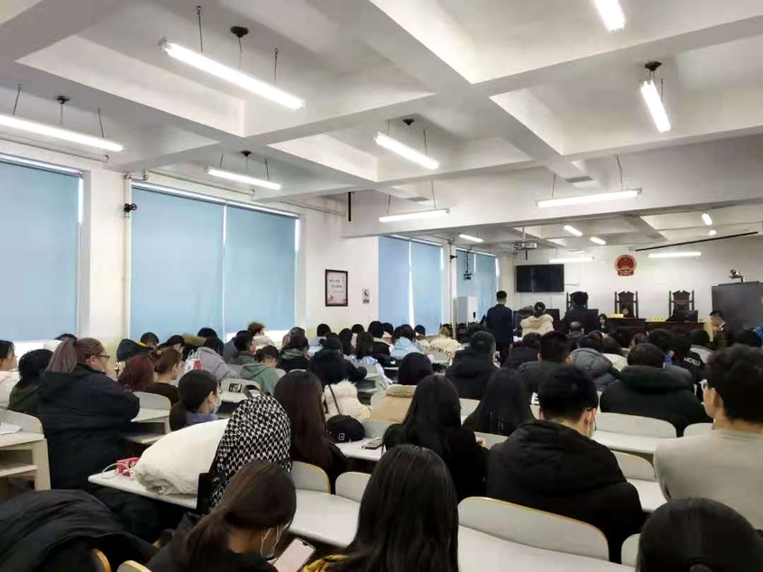 2020年12月16日下午两点,由suncitygroup太阳新城法学学会主办的模拟法庭竞赛之决赛于一教模拟法庭教室举办。suncitygroup太阳新城副经理朱晖、大连海事法院专委刘铁男、辽宁法大律师事务所高级合伙人张旭涛以及大连市检察院检察员王鹤作为评委出席本次比赛。