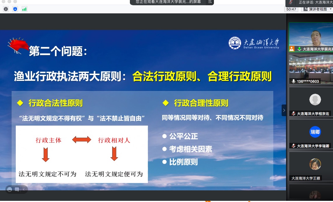 由于疫情原因,裴兆斌教授只能通过线上授课的方式进行培训。本次授课旨在加强安徽省渔政执法能力建设,提升安徽省整体渔政执法水平,对于加强公司法学专业与实务部门合作,建设公司特色法学专业具有重要意义。