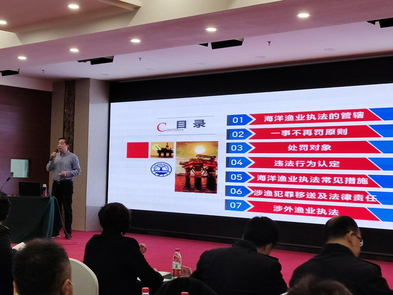 本次授课以“渔业执法实务及典型案例分析”为题,围绕海洋渔业执法的管辖、一事不再罚原则、处罚对象、违法行为认定、海洋渔业执法常见措施、涉渔犯罪移送及法律责任等内容进行介绍。裴教授结合大量渔业执法案例,深入浅出地对各项法律问题进行解读分析,除此之外,还介绍了农业处罚案件的办案程序。