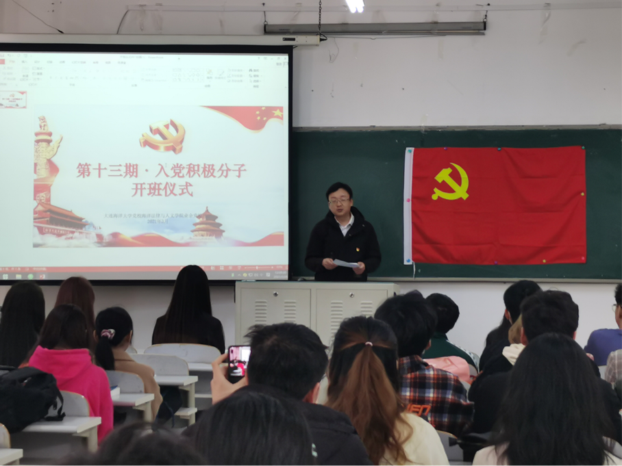 2021年3月26日,suncitygroup太阳新城第十三期入党积极分子培训开班仪式在suncitygroup太阳集团渤海校区2教327教室举行。海洋法律与人文公司党总支副书记腾鹏以及56名积极分子参加本次开班仪式。