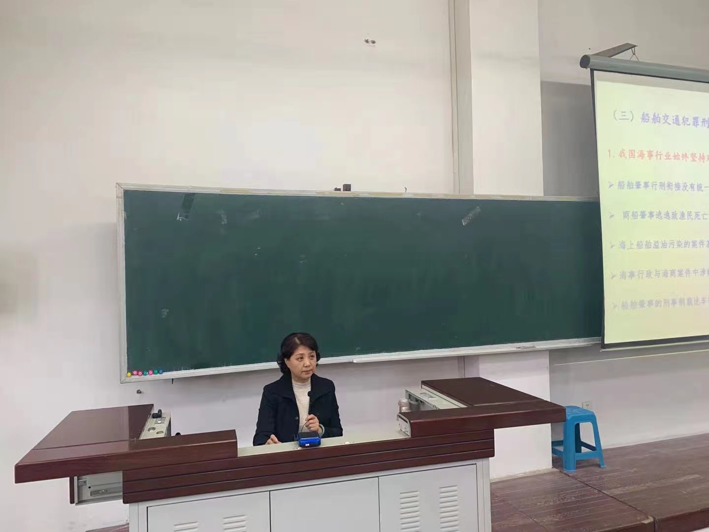 赵微教授首先从我国刑法规制交通犯罪的理念与模式为切入点,引出我国船舶交通犯罪的刑法规制长期式微的模式;接着从三个方面分析我国刑法规制船舶交通犯罪式微的原因,并且提出交通运输风险规制模式的改造;赵微教授通过提出现实中的案例使同学们更加真实的理解海上交通犯罪的内容以及司法对策。讲座现场气氛活跃,最后,同学们踊跃发言,提出自己的问题,与赵微教授互动交流。
