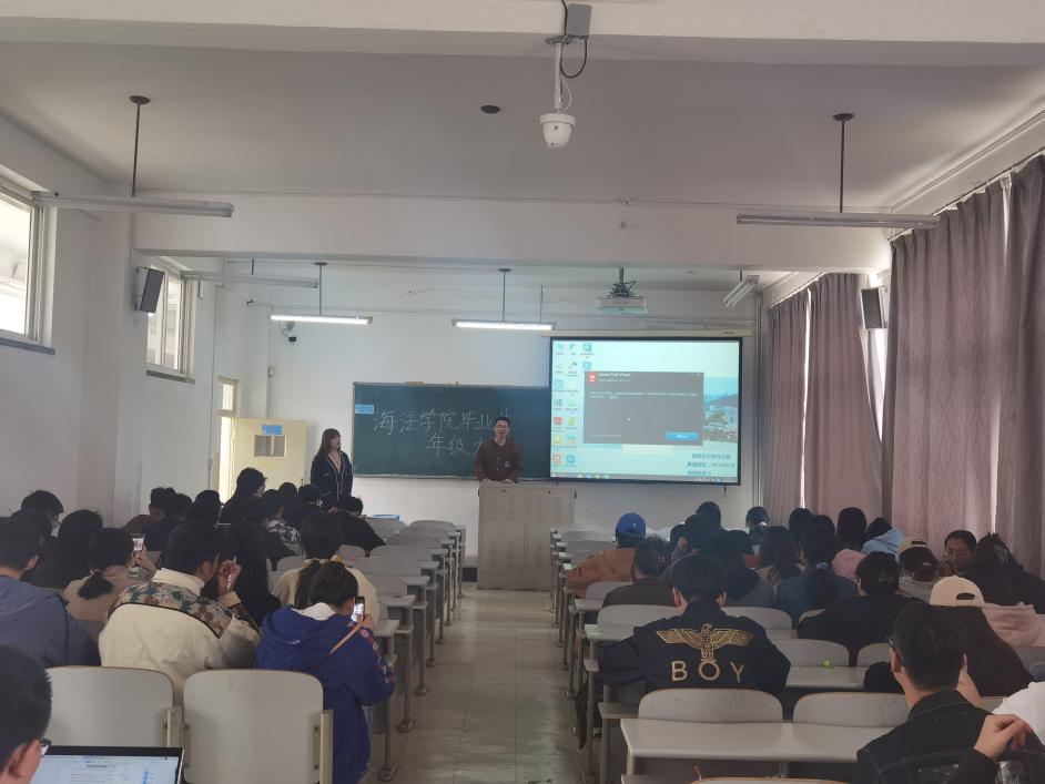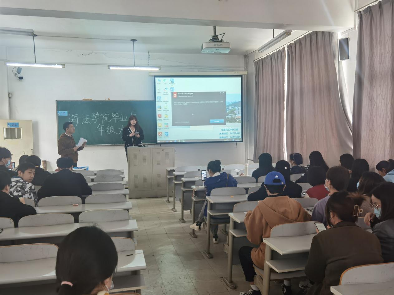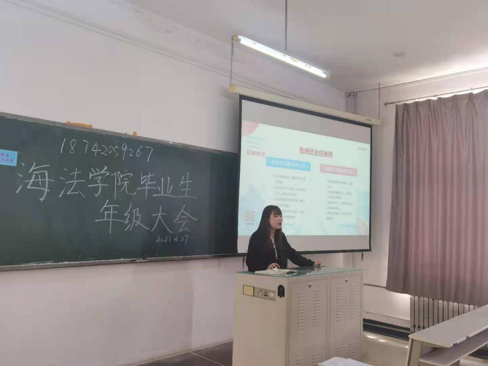 第二部分于小帆老师介绍毕业生毕业工作情况。她着重强调了毕业生毕业论文的审查工作,她希望全体毕业生能够认真准备毕业论文答辩,珍惜最后的在校时光,为自己的老员工活画上圆满的句号。