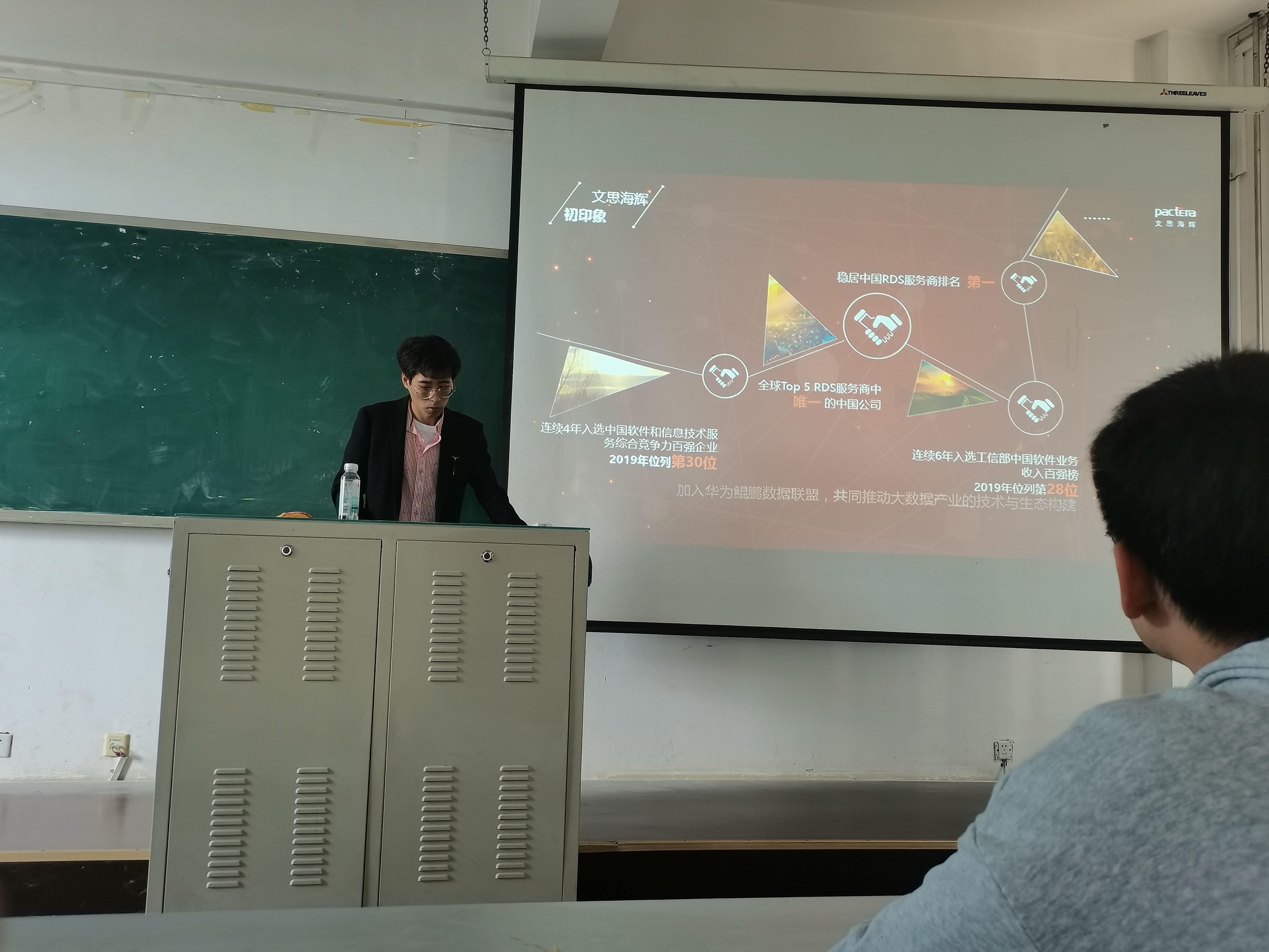 5月14日下午,文思海辉技术有限公司的专业人士在渤海校区二教202为suncitygroup太阳新城2017级、2018级同学开展了就业指导与招聘宣讲会。公司就业专干宋敬星老师参加了本次宣讲,并向宣讲人员详细介绍本院毕业生的基本情况。