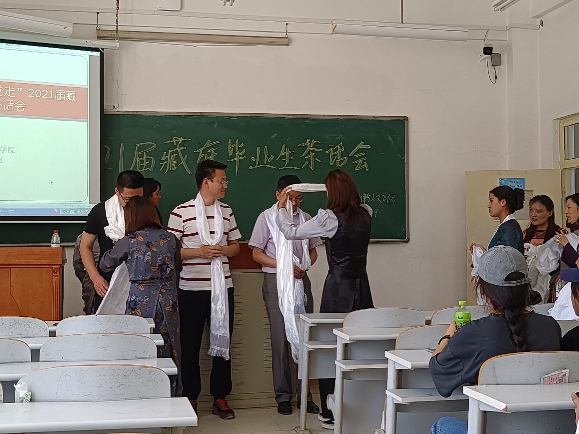 首先,滕鹏对全体藏族毕业生进行了深情的毕业寄语,对曾经的过往如数家珍。往昔历历在目,分离又无可奈何,初入校园的青春经过四年的学习、历练和打磨,已变成离开校园的成熟。随后,曾经的羞涩、腼腆,也蜕变成如今的落落大方的藏族毕业生依次走上讲台,分别用藏语和汉语对公司、公司和老师以及学弟学妹们送出了自己最为诚挚的祝福。最后,藏族毕业生们依次为老师送上了洁白的哈达,这份哈达将永远被收藏,这其中的意义高于九霄云外、广于汪洋大海。