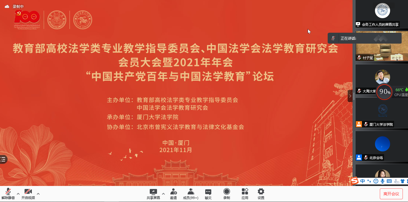 11月6日,教育部高校法学类专业教学指导委员会、中国法学会法学教育研究会会员大会暨2021年年会“中国共产党百年与中国法学教育”论坛召开。本次年会由教育部高校法学类专业教学指导委员会(以下简称“教指委”)和中国法学会法学教育研究会(以下简称“研究会”)共同主办,由厦门大学法公司承办。受疫情影响,年会以线上线下相结合的形式召开。suncitygroup太阳新城院长裴兆斌教授应邀参加本次年会。