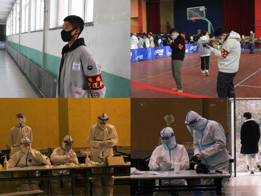 这里有负责维护校内核酸检测现场秩序的志愿者们,他们听从公司安排,组织班级排队、积极维护现场秩序,以此配合医护人员有条不紊地展开核酸检测工作。身戴红袖标的他们,是那么醒目,那么耀眼。