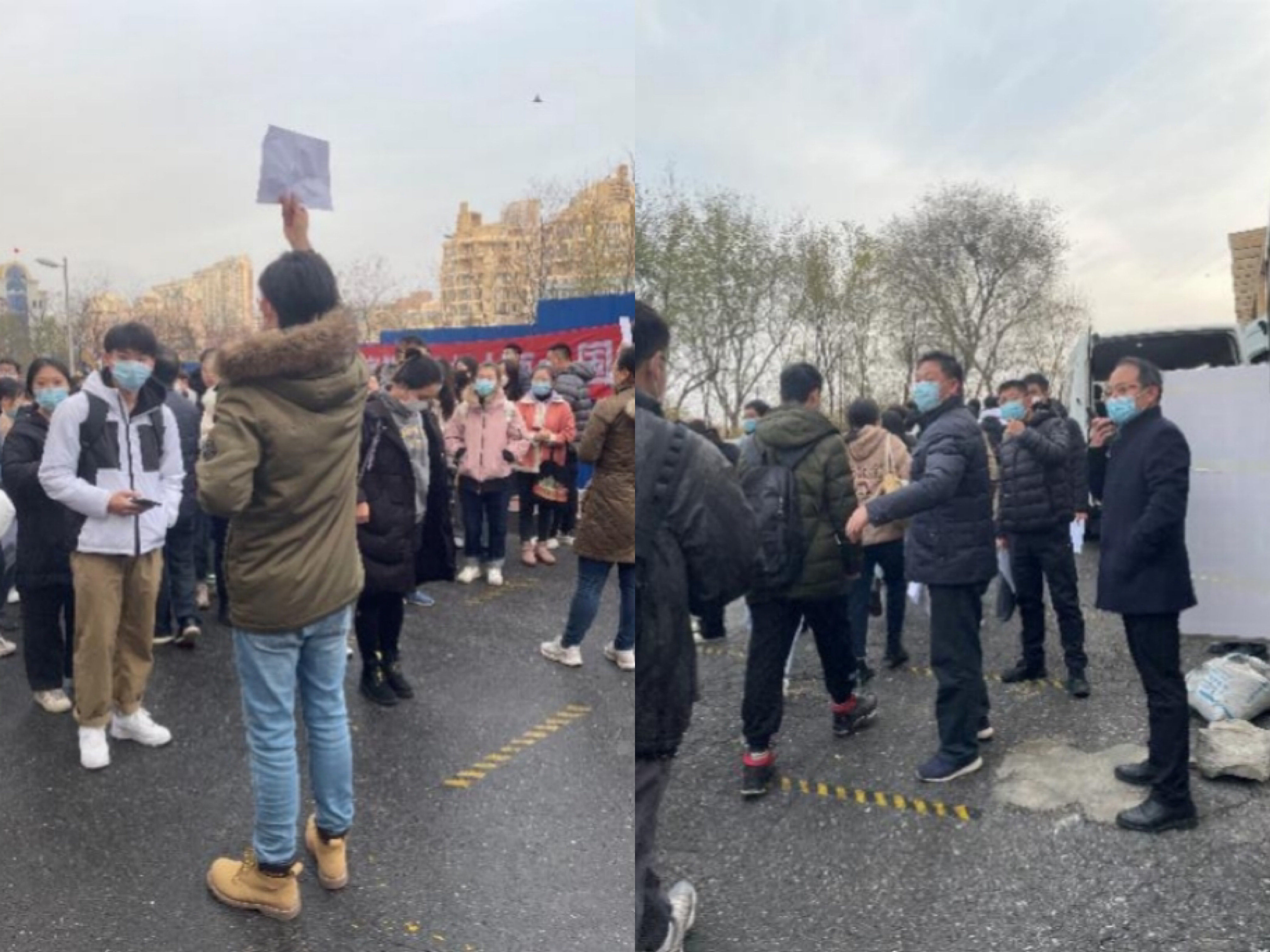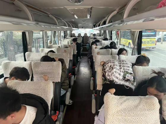 11月28日傍晚,大巴车停在公寓楼前,公司参加国考员工顺利结束考试,安全回到公寓。