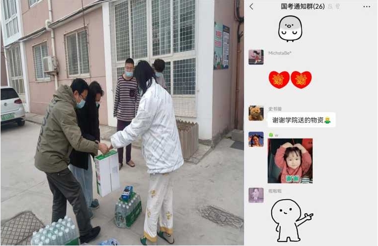 此外,公司还建立了“国考通知群”,把“暖心服务”融入“硬核管理”,使员工安心,家长放心。同时,公司还为隔离同学加送了饼干、牛奶、面包等生活物资,让同学们感受到公司的关爱。