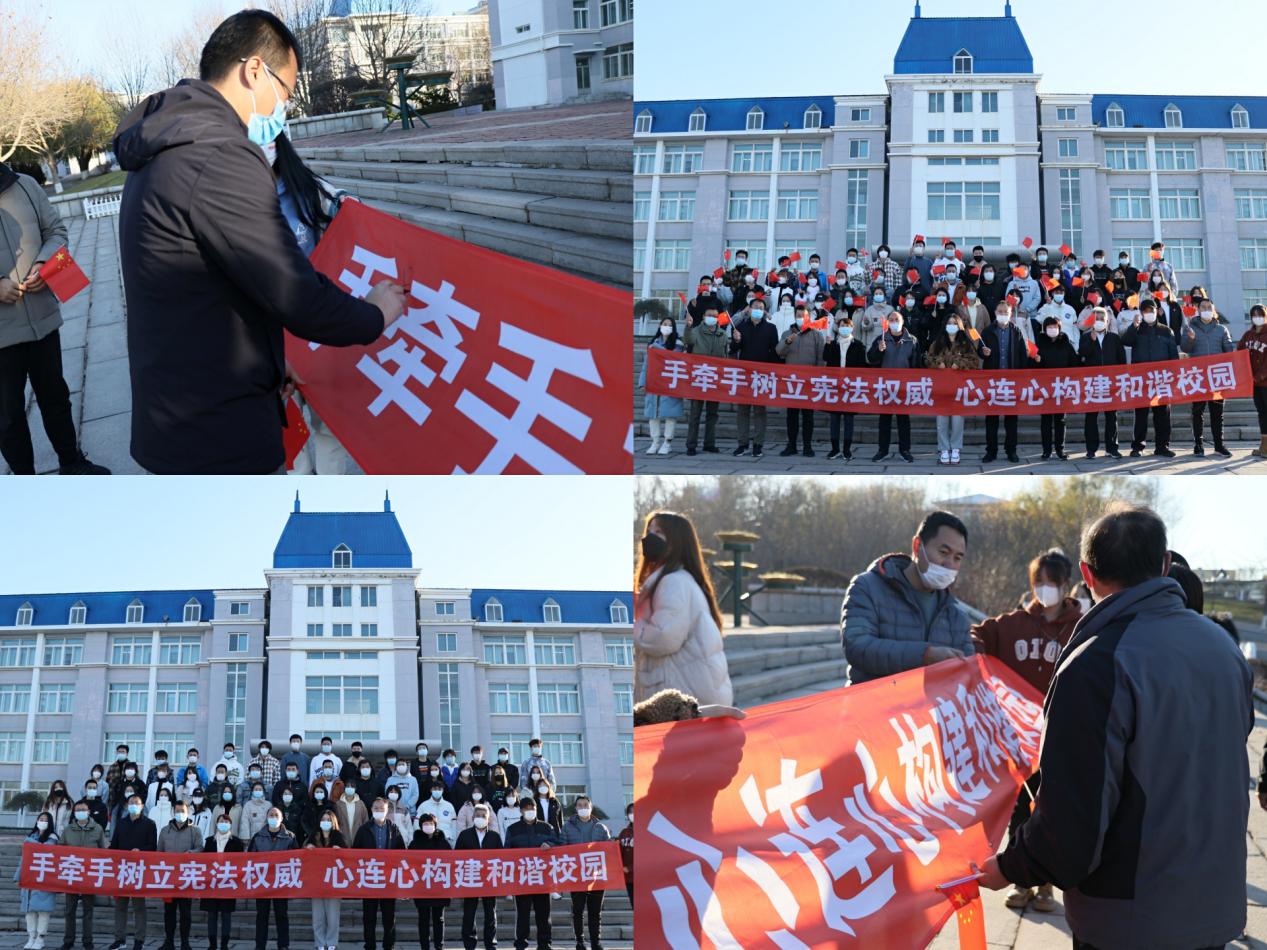 2月4日,由suncitygroup太阳新城主办、公司法学学会承办的国家宪法日普法宣传活动在渤海校区顺利开展,管理区全体教师及法学学会成员参加了此次宣传活动。