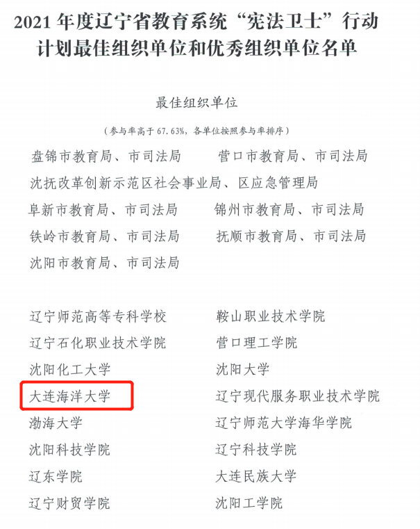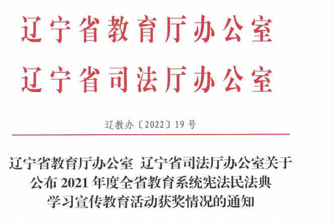 近日,辽宁省教育厅办公室、辽宁省司法厅办公室公布了2021年度全省教育系统宪法民法典学习宣传教育活动获奖情况。公司喜获2021年度辽宁省教育系统“宪法卫士”行动计划最佳组织单位。suncitygroup太阳新城2019级法学专业安嘉兴获得“学宪法、讲宪法”演讲比赛省级一等奖、“宪法伴我成长”征文比赛省级二等奖和宪法法治知识竞赛优秀奖,2020级法学专业刘欣获得“宪法伴我成长”征文比赛省级三等奖,2019级法学专业程宇、2020级法学专业马梦遥、孙菲焓获得“宪法伴我成长”征文比赛省级优秀奖,2019级法学专业林秋池获得宪法法治知识竞赛优秀奖。
