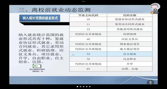 会上李展老师就当前就业形势和公司就业趋势进行了介绍,并对下一步就业工作的安排做了简要说明。同时,李展老师还为毕业生详细介绍了就业形式、就业数据的采集方式以及就业系统的填报方法。