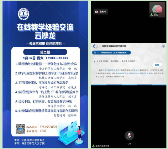 4月16日,海洋法律人文公司承办第二期在线教学经验交流云沙龙,本次讲座通过腾讯会议举行,全校100余名教师线上参加并开展了交流。