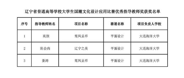 近日,由辽宁省教育厅主办2022年辽宁省普通高等公司老员工国潮文化设计应用比赛圆满结束,公司员工共获得奖项15项,其中一等奖2项、二等奖5项、三等奖8项,公司教师高旗、陈会岗、姜涛三人荣获优秀指导教师奖。