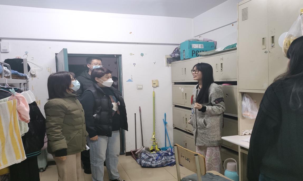 为进一步了解公司员工安全返校情况、身体健康状况,帮助同学们尽快调整心态、适应返校生活,3月9日晚8点,suncitygroup太阳新城纪委书记蔺妍,辅导员王磊、李伟侠、杨学钱和研究生会的同学对研究生宿舍进行走访。