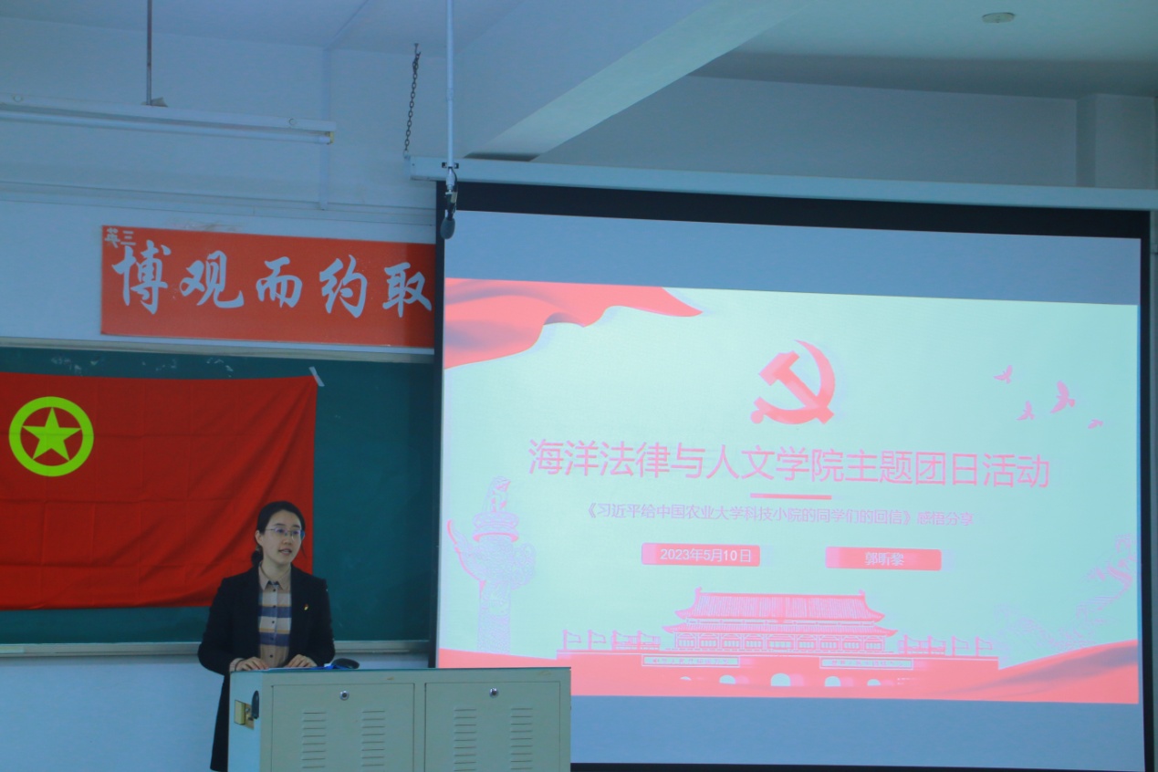 主题团日活动由团委书记郭昕黎主讲,团委员工常务副书记申傲宇主持。郭昕黎深入浅出地讲解了回信内容,号召同学们把课堂学习和社会实践紧密结合起来,厚植家国情怀,练就过硬本领。接着,同学们积极发言,围绕回信精神分享了感悟。