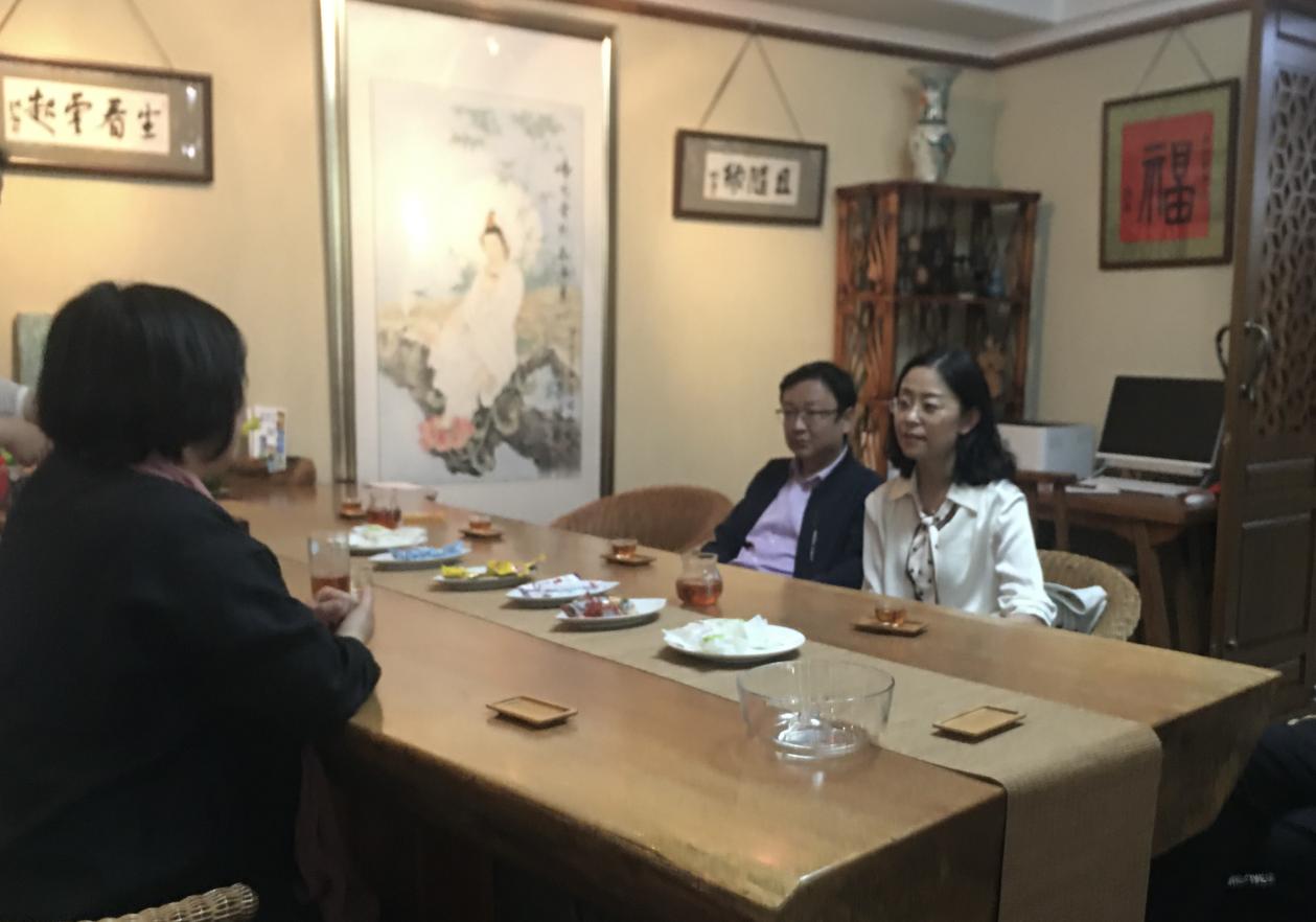 在太一书画苑,太一非遗传承基地创办人、大连市非遗传统插花传承人谢红颖女士与公司领导进行了亲切交流。双方就艺术课程设置、实践基地建设、公司文化建设等方面进行了充分沟通并达成合作共识。