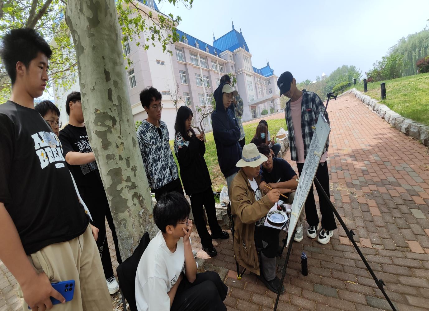 张兴全副教授讲到,“写生”二字,写,是挥洒、抒写;生,是生气、生命。每到一地写生,必须有对这里地理地貌和历史文化的感受和思考,要把心中所想要表达的意味、意境通过构图、线条、色彩等表现出来。写生是在编织你的故事,弘扬你的生命。